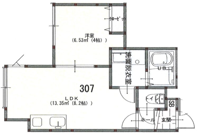 間取り内容 洋室:6.53㎡(4帖) LDK:13.35㎡(8.2帖)
